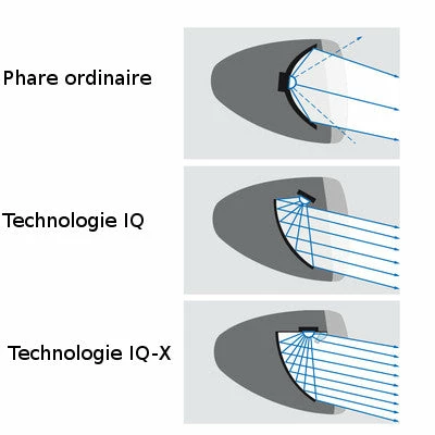 L’éclairage IQ-X allie plusieurs styles. La forme du feu possède un design rétro tandis que le l’interrupteur et le boitier arborent une apparence plus futuriste. De couleur noire, le boitier du phare est fait en aluminium de haute qualité qui lui offre une légèreté et permet un refroidissement pour éviter la surchauffe.