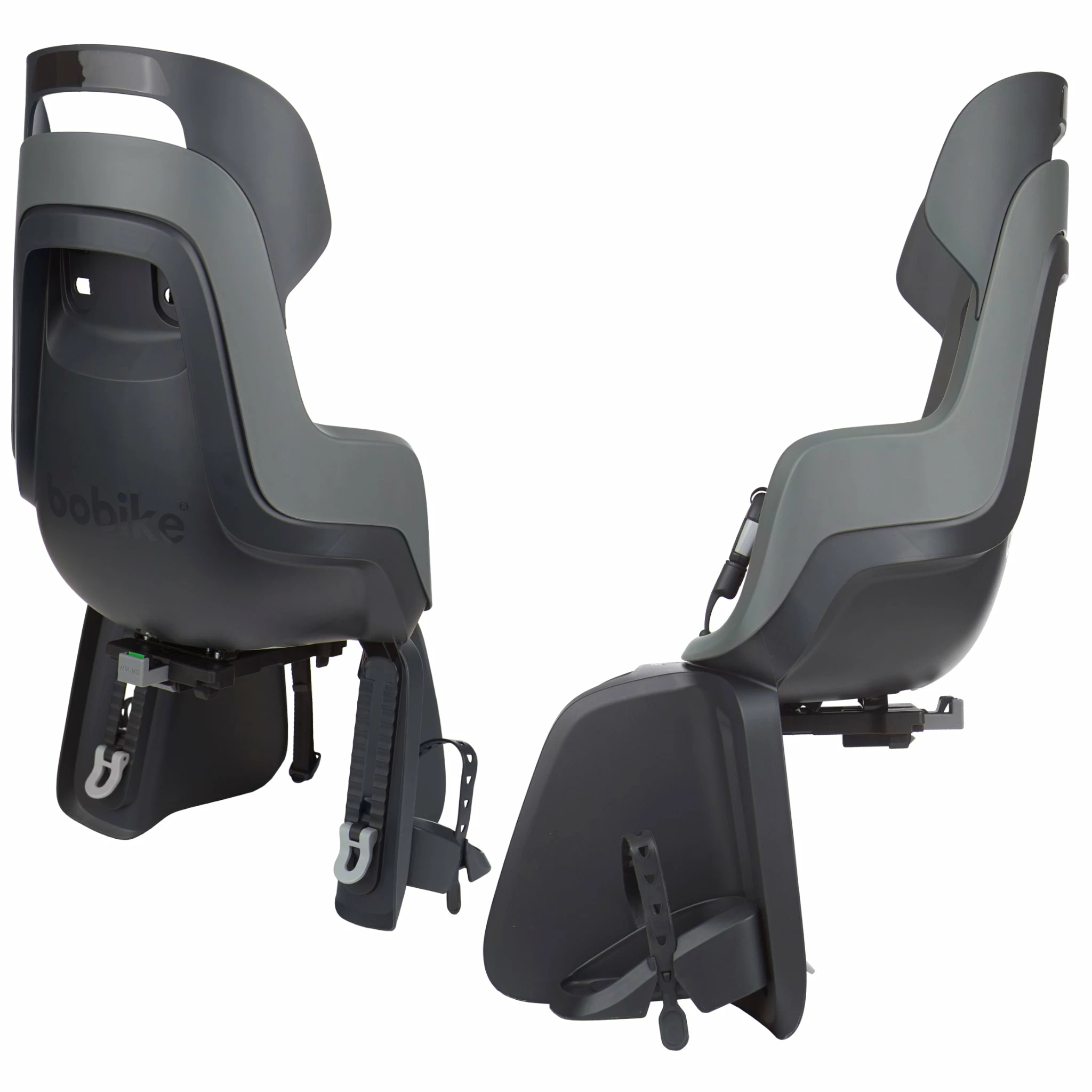 - Le siège arrière gris Go Maxi Bobike sur tube de selle